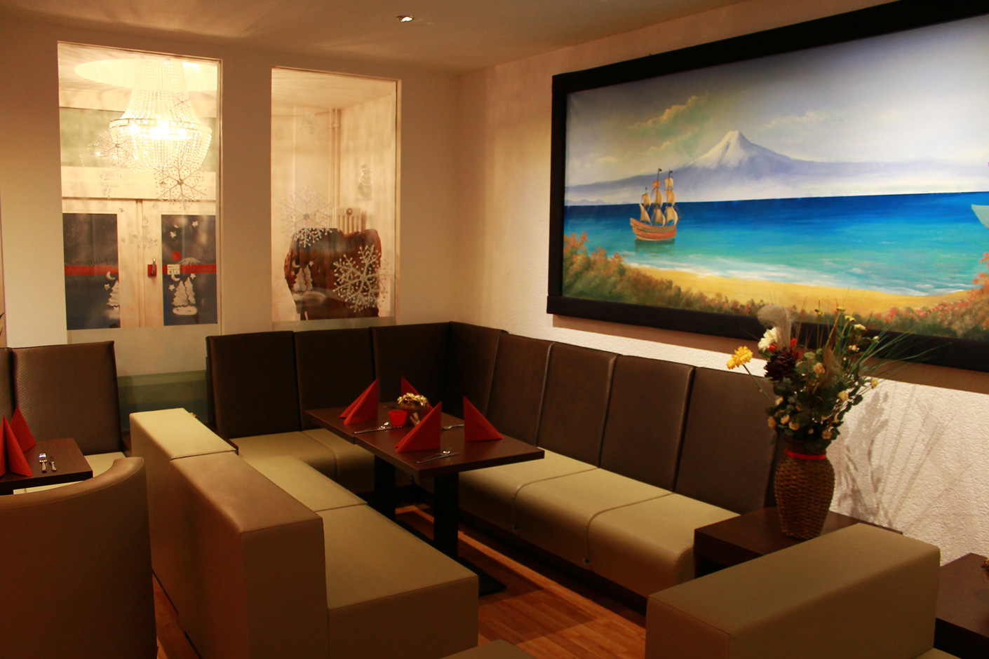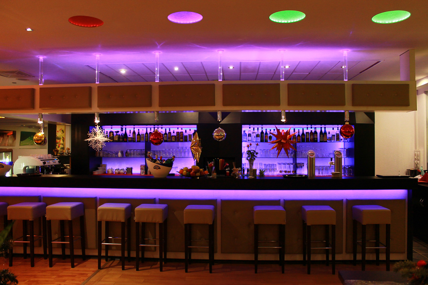 In unserem warmen Ambiente werden Sie sich sicher wohlfühlen. Weiterhin können Sie unsere moderne Bar bestaunen und mit Exotischen Cocktails verwöhnen lassen.