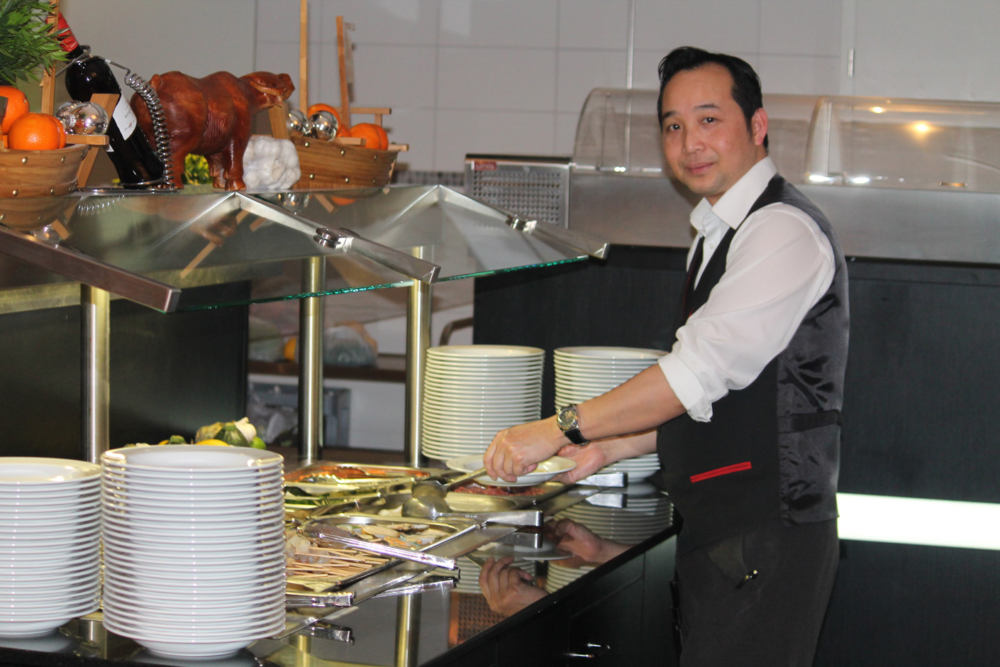 ob Mittags für den schnellen Hunger am Buffet oder Abends in gemütlicher Atmospäre in unserem Lounge-Bereich im Kreise von Freunden - Bei uns finden Sie immer eine große Auswahl an Speisen und Getränken. Wir freuen uns, Sie in unserem Restaurant begrüßen zu dürfen.