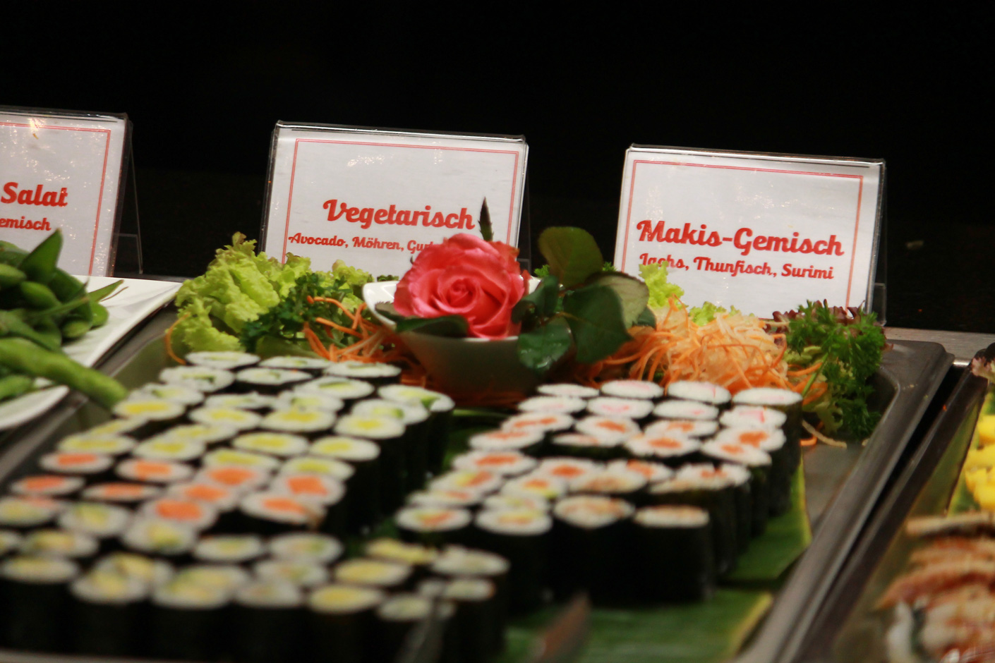 Wir bieten Ihnen eine umfangreiche Auswahl an bekannten und exotischen Speisen. Unser Buffet lässt kaum Wünsche offen. Aber machen Sie sich doch gern selbst einen Eindruck. Hier haben wir für Sie mal ein paar schöne Bilder von unserem Angebot.